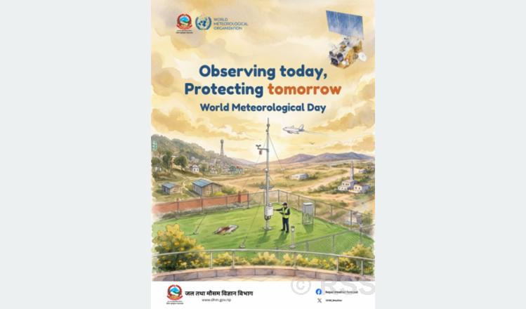 काठमाडौँ, ९ चैतः ‘आजको अवलोकन, भोलिको सुरक्षा’ भन्ने नाराका साथ नेपालमा पनि बिबिध कार्यक्रम आयोजना गरी विश्व जल तथा मौसम दिवस मनाइँदै छ । सन् १९५० मा विश्व मौसम विज्ञान सङ्गठनको स्थापना भएको दिनको सम्झनामा सन् १९६१ देखि यो दिवस मनाउन थालिएको हो ।