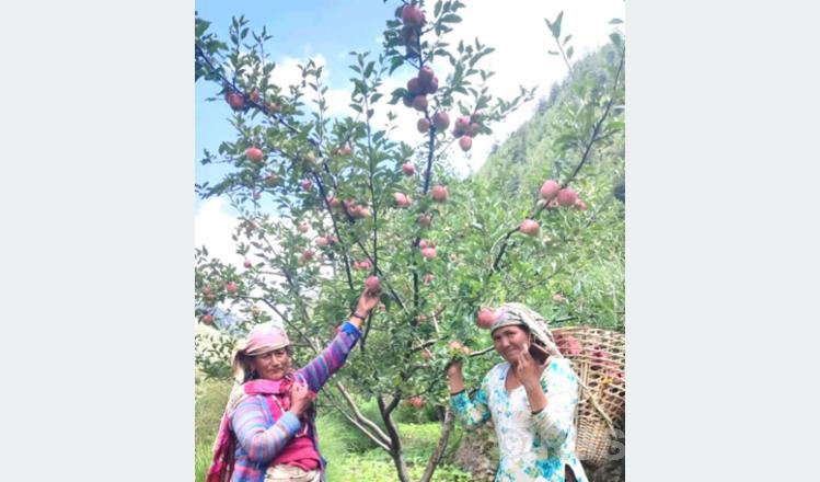 जुम्ली किसानलाई स्याउ टिप्न भ्याइनभ्याइ