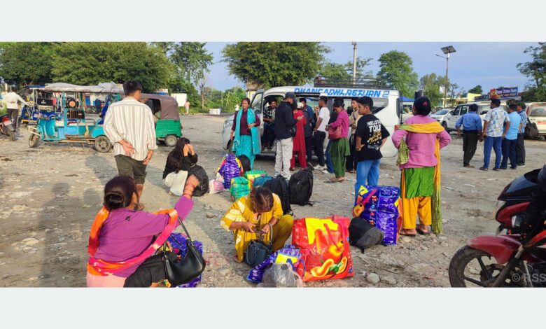 परिवारसहित काम खोज्दै भारतको हिमाञ्चल प्रदेश जान लाग्नुभएका डोटीको जोरायल गाउँपालिका–२ का करन थापा मङ्गलबार गड्डाचौकी नाकामा भेटिनुभयो । “साँझ–बिहान छाक टार्न समस्या छ, पैसा नभई कसरी दसैँ हुन्छ”, उहाँले भन्नुभयो, “पैसा भयो भने तिहार मनाउन आउँछु । यसपटक घरमा बसेर दसैँ मनाउन पाइएन ।” थापाले दसँैको समयमा बालबच्चाको विद्यालय बिदा भएका कारण परिवारका सबैजना काम खोज्दै हिमाञ्चलन प्रदेश जान लागेको बताउनुभयो ।