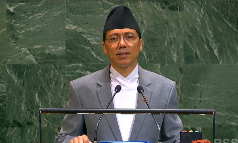 संयुक्तराज्य अमेरिकाको न्यूयोर्कमा जारी संयुक्त राष्ट्रसङ्घ महासभाको ८०औँ अधिवेशनलाई सोमबार नेपालका तर्फबाट सम्बोधन गर्दै स्थायी प्रतिनिधि थापाले भन्नुभयो, “हाम्रो अघि बढ्ने एक मात्र सम्भावित बाटो भनेकै शान्ति, लोकतन्त्र र समावेशी विकासको बाटो हो ।”