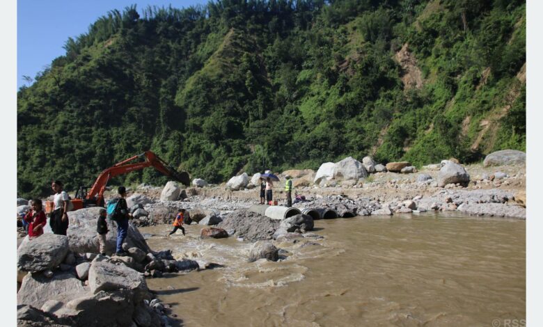 पाँचथरको फिदिम–फालोट सडक अन्तर्गत फेमे खोलामा ‘डाइभर्सन’ निर्माण हुँदै