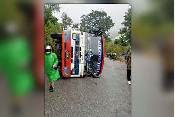 धनकुटामा बस पल्टियो ,एक जना घाइते