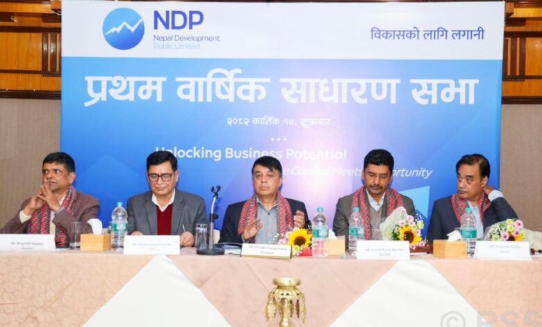 काठमाडौँ, १५ कात्तिकः नेपाल डेभलपमेन्ट पब्लिक लिमिटेडले लगानीका दायरा विस्तार गर्न सरकारी, राष्ट्रिय, अन्तर्राष्ट्रिय तथा गैरसरकारी कोषसँग सार्वजनिक–निजी साझेदारीमार्फत सहकार्य गर्दै ठूला र रोजगारमुलक आयोजनामा लगानी गर्ने निर्णय गरेको छ ।