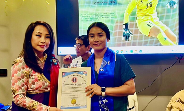 नेपाली महिला फुटबलकी गौरव एन्जीला तुम्बापो सुब्बा सम्मानित
