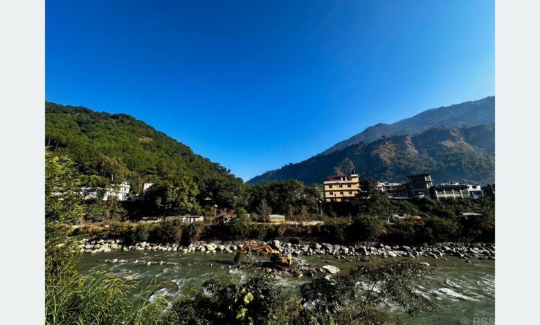 म्याग्दी नदीमा पानीको सतह घटेपछि पर्खाल निर्माण सुरु
