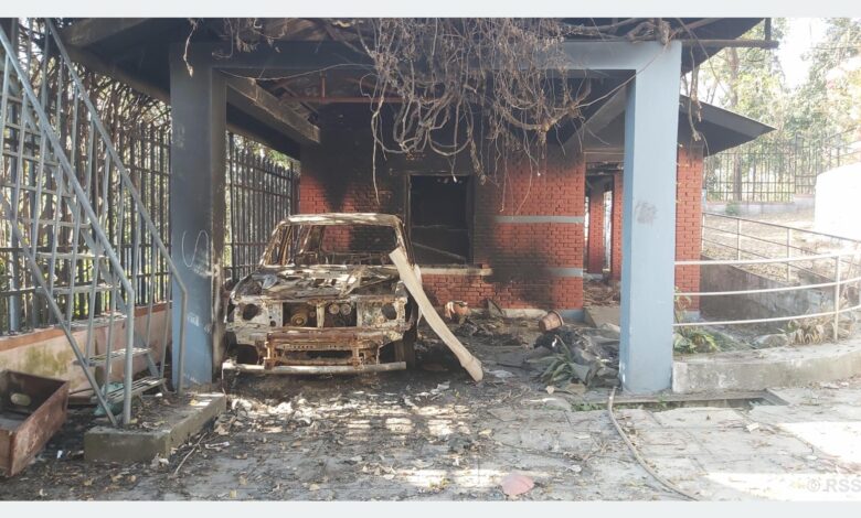 आश्रमको ताला लगाउने ठाउँमा बेरिएको तार, आश्रम परिसरमा आगजनी गरिएका दुईवटा सवारी अलपत्र थिए । आश्रमको सिसा फुटाइएका झ्याल, ट्रष्ट फ्याँकिएको कार्यक्रमस्थल मात्रै बाँकी थिए ।