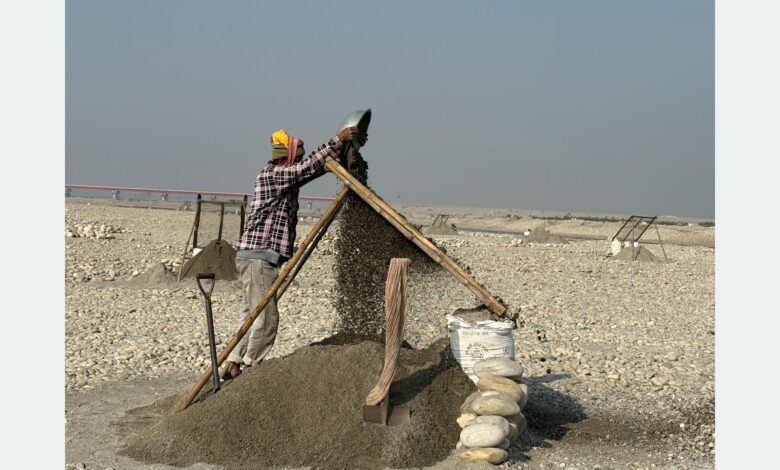 महाकालीको बगरमा बालुवा छानेर जीविका चलाउने दम्पतीहरू