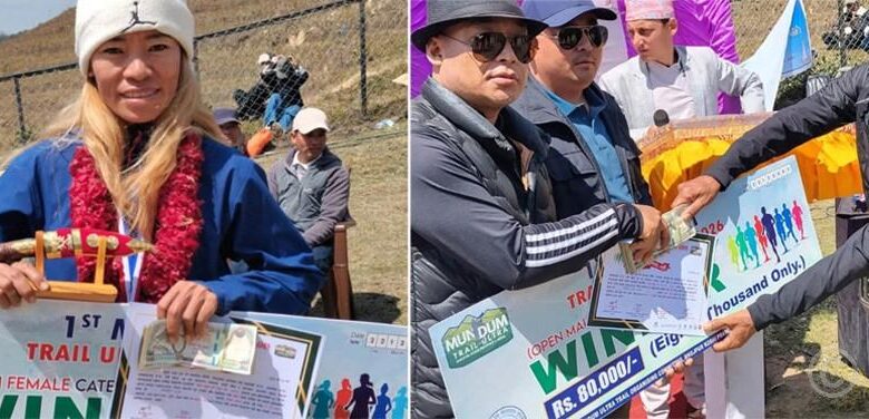खोटाङ, २३ चैतः ‘मुन्दुम ट्रेल अल्ट्रा रेस–२०८२’को उपाधि महिलातर्फ खोटाङकी निर्मला राई र पुरुषतर्फ ओखलढुङ्गाका विनोद थापामगरले जित्नुभएको छ । महिला/पुरुष ६० किलोमिटर खुला अल्ट्रा रेस प्रतियोगितामा निर्मलाले आठ घण्टा २० मिनेट तथा विनोद छ घण्टा ५० मिनेटमा दूरी पार गर्दै उपाधि जित्नुभएको हो ।